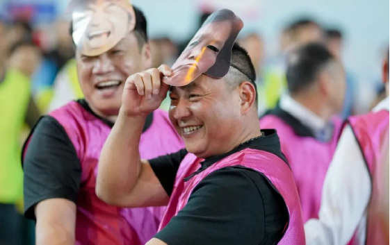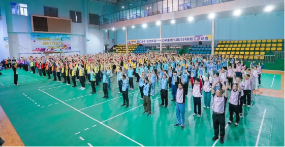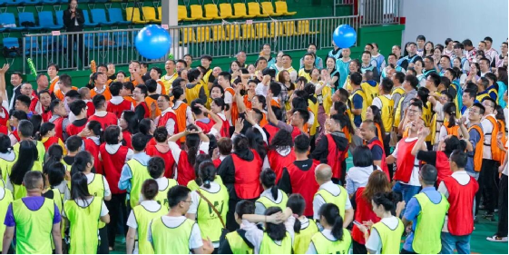 开幕式阶段,公司领导将手持象征“江水”的蓝色气球与象征“大坝”的银色气球,轻轻抛向职工队伍,将信任与期望稳稳交予全体职工,气球在队伍间来回传动,大家抬手托举、笑意盈盈,笑声与欢呼声在场馆里此起彼伏。